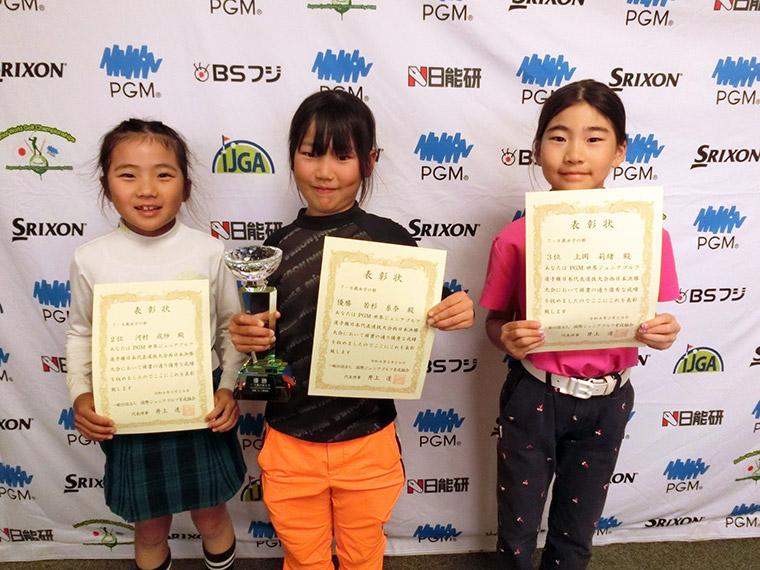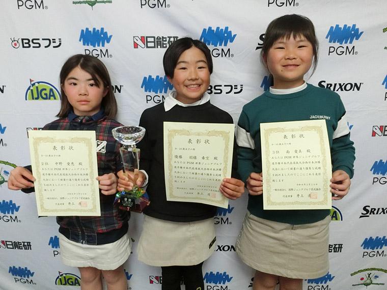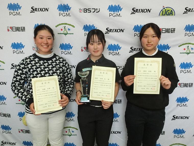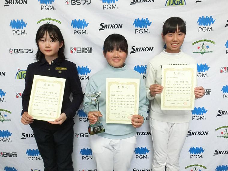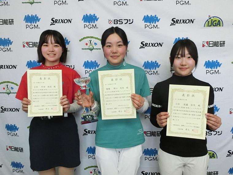 同女子は大混戦となり、目まぐるしく順位が入れ替わる中で、寺岡虹(こう、広島・府中学園9年)が通算6オーバー150で優勝、2位に1打差で斎藤美雅(みか、埼玉・朝霞第二中2年)が入り、ともに初めての日本代表となった。